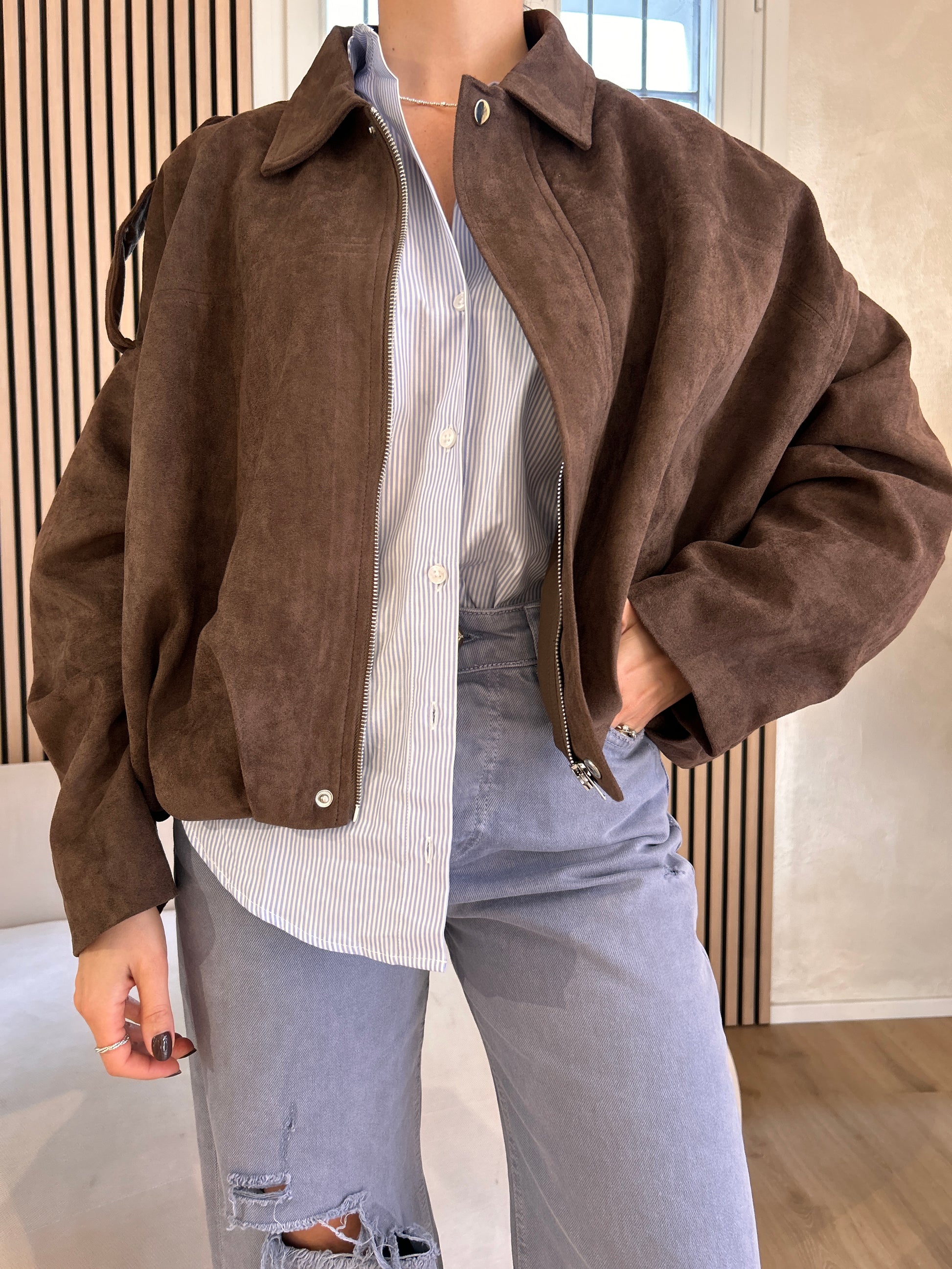 Bomber di Kontatto in suede , in taglia unica. Vestibilità dalla 38 alla 44.
