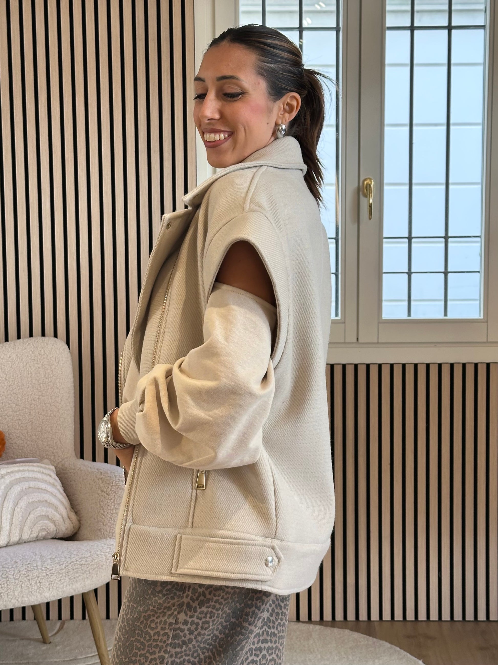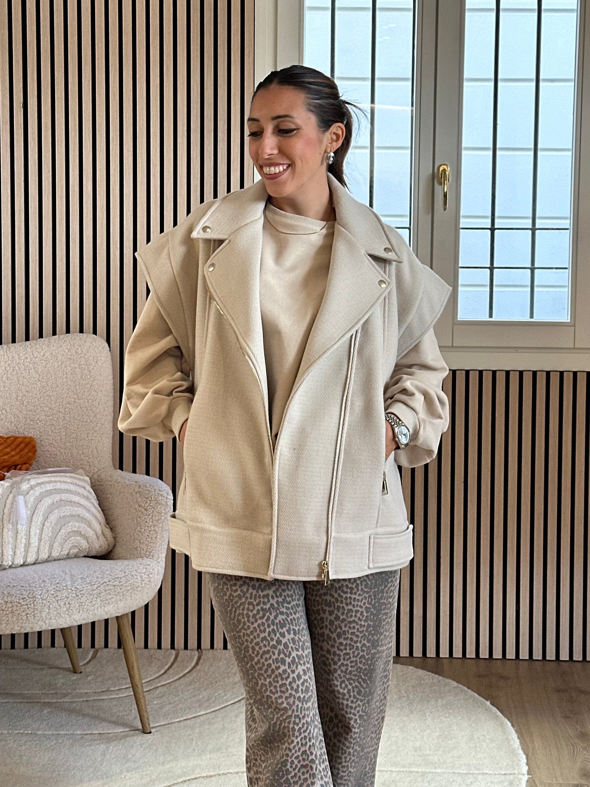 Chiodo over in panno beige: il capo essenziale che trasforma ogni guardaroba. Realizzato in morbido panno di qualità, questo blazer beige offre versatilità senza compromessi. Perfetto per passare dal lavoro alla sera, si abbina facilmente a qualsiasi outfit.