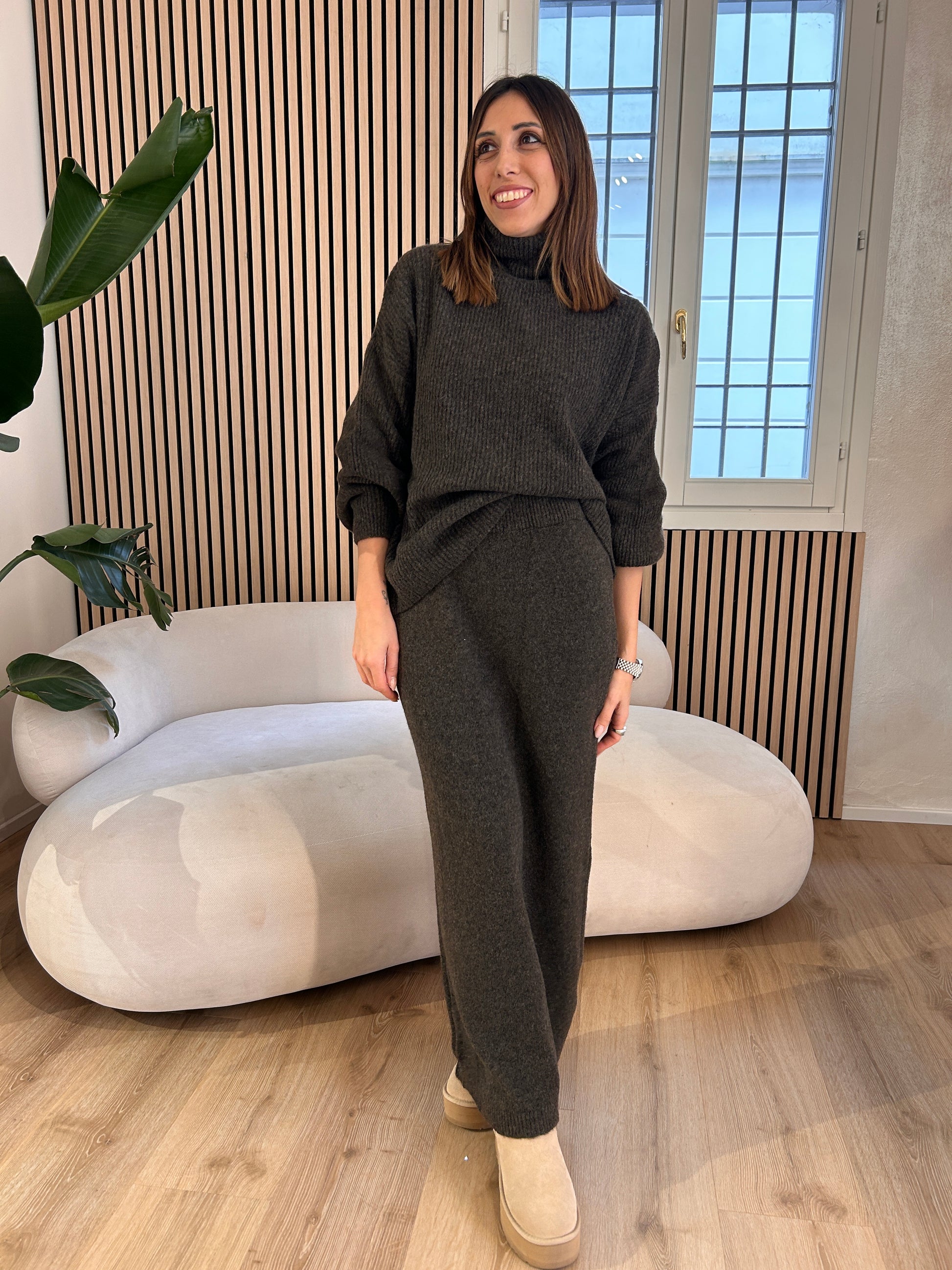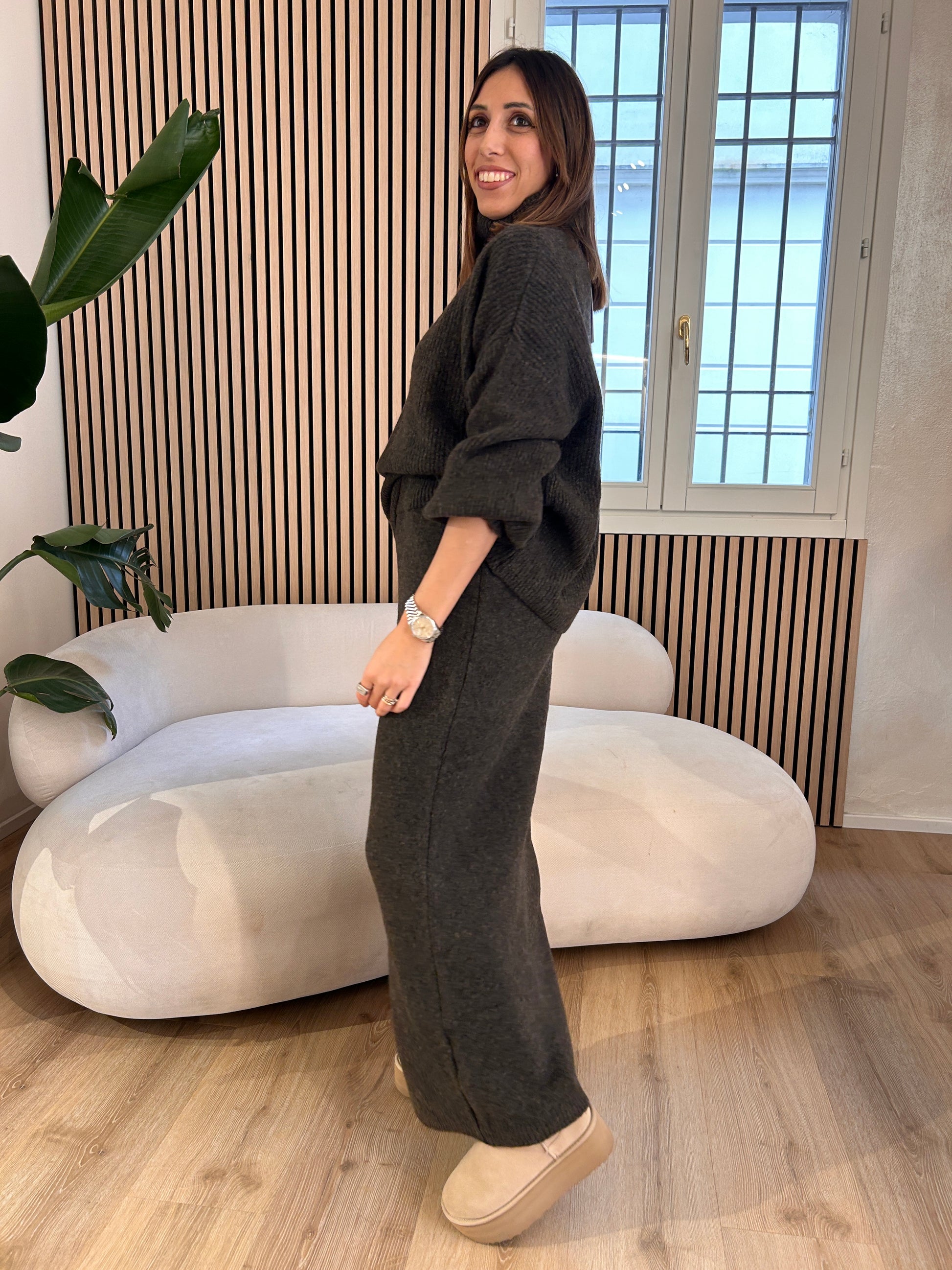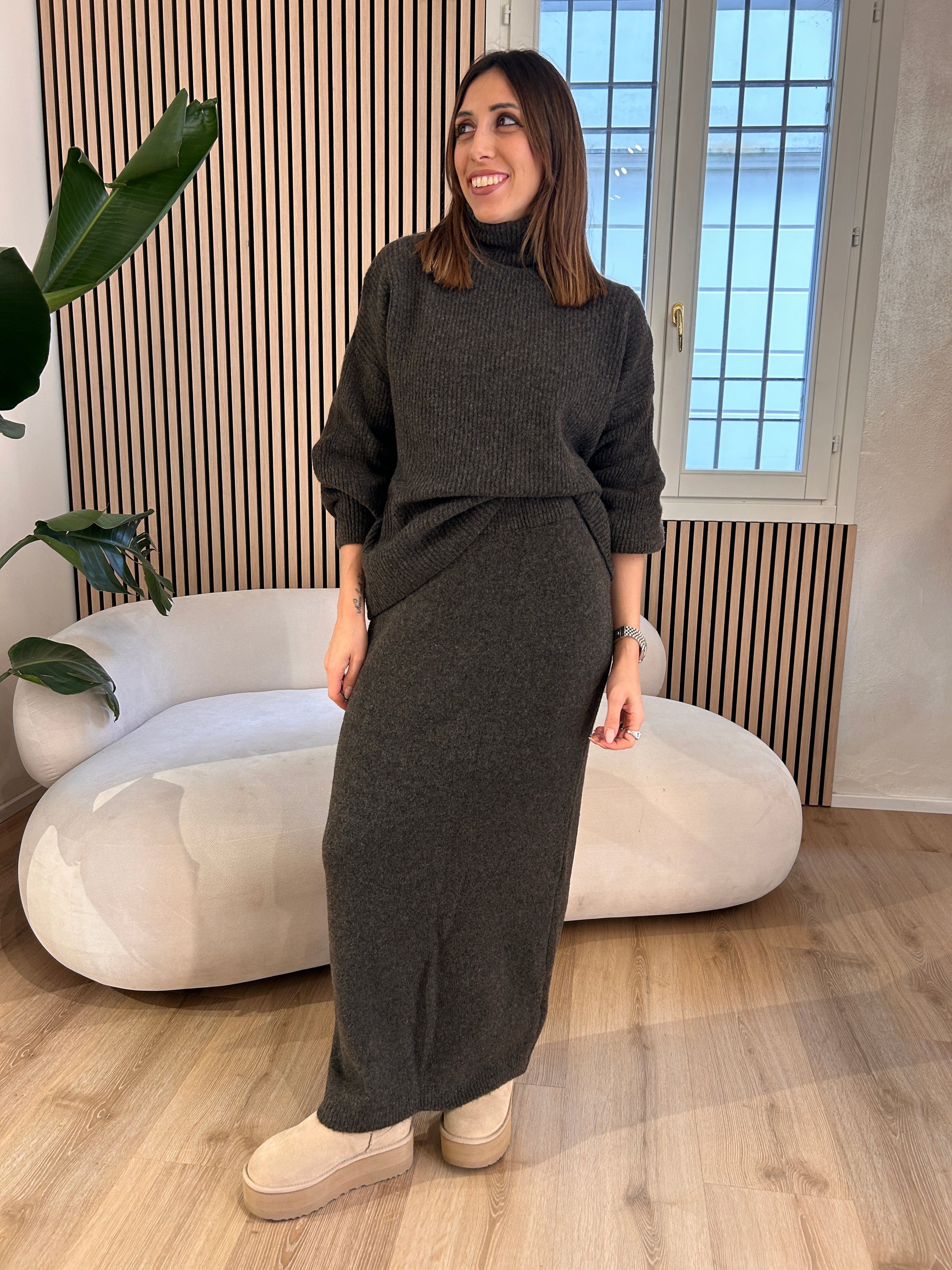 Completo maglia e gonna misto lana moro