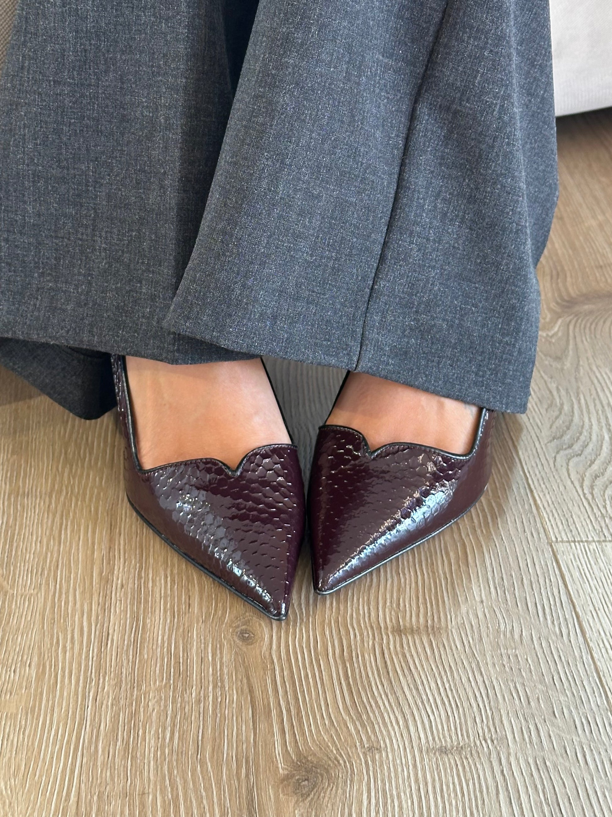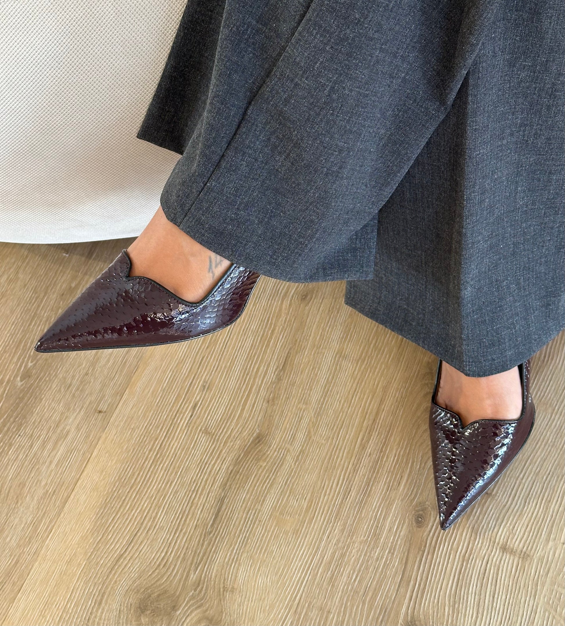 Le décolleté in pitone bordeaux è un'ottima scelta per chi vuole un tocco elegante al proprio outfit. La texture in pitone e il colore bordeaux donano un aspetto sofisticato. Perfette per ogni occasione, queste décolleté ti faranno sentire sicura e pronta per affrontare la giornata.