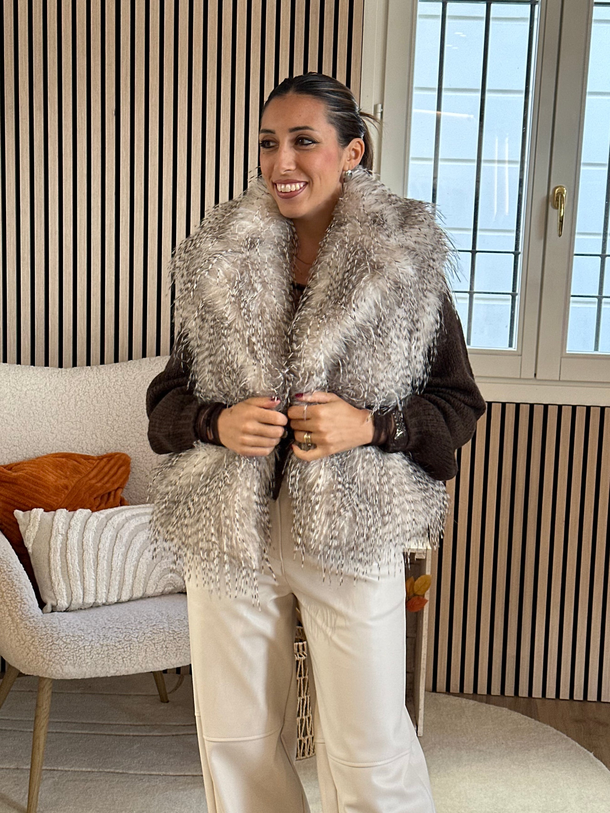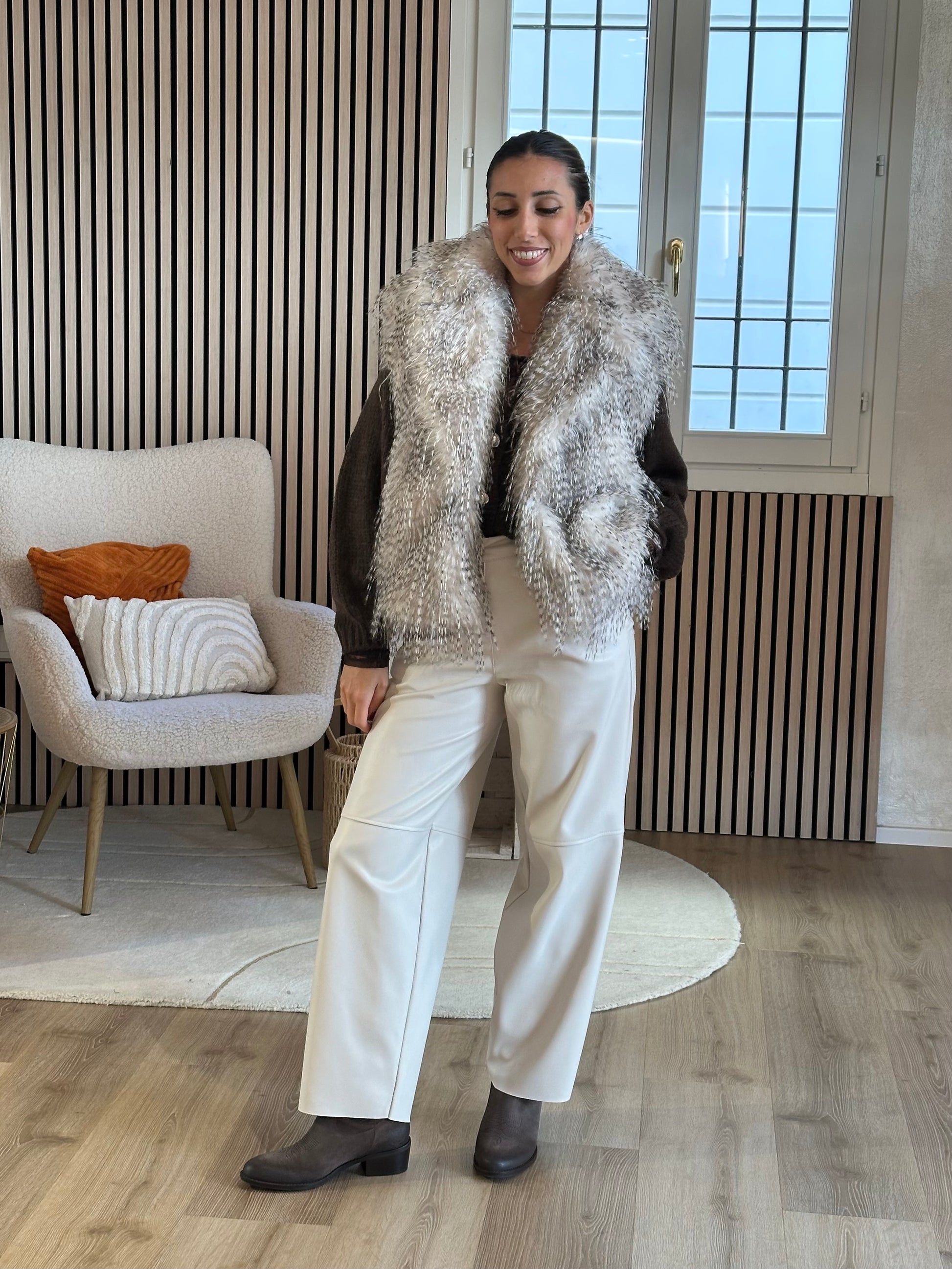 Il gilet smanicato Ecofur è realizzato in ecopelliccia ecosostenibile, perfetto per l'inverno. La sua morbidezza e leggerezza garantiscono un calore naturale e un'etica eco-consapevole.