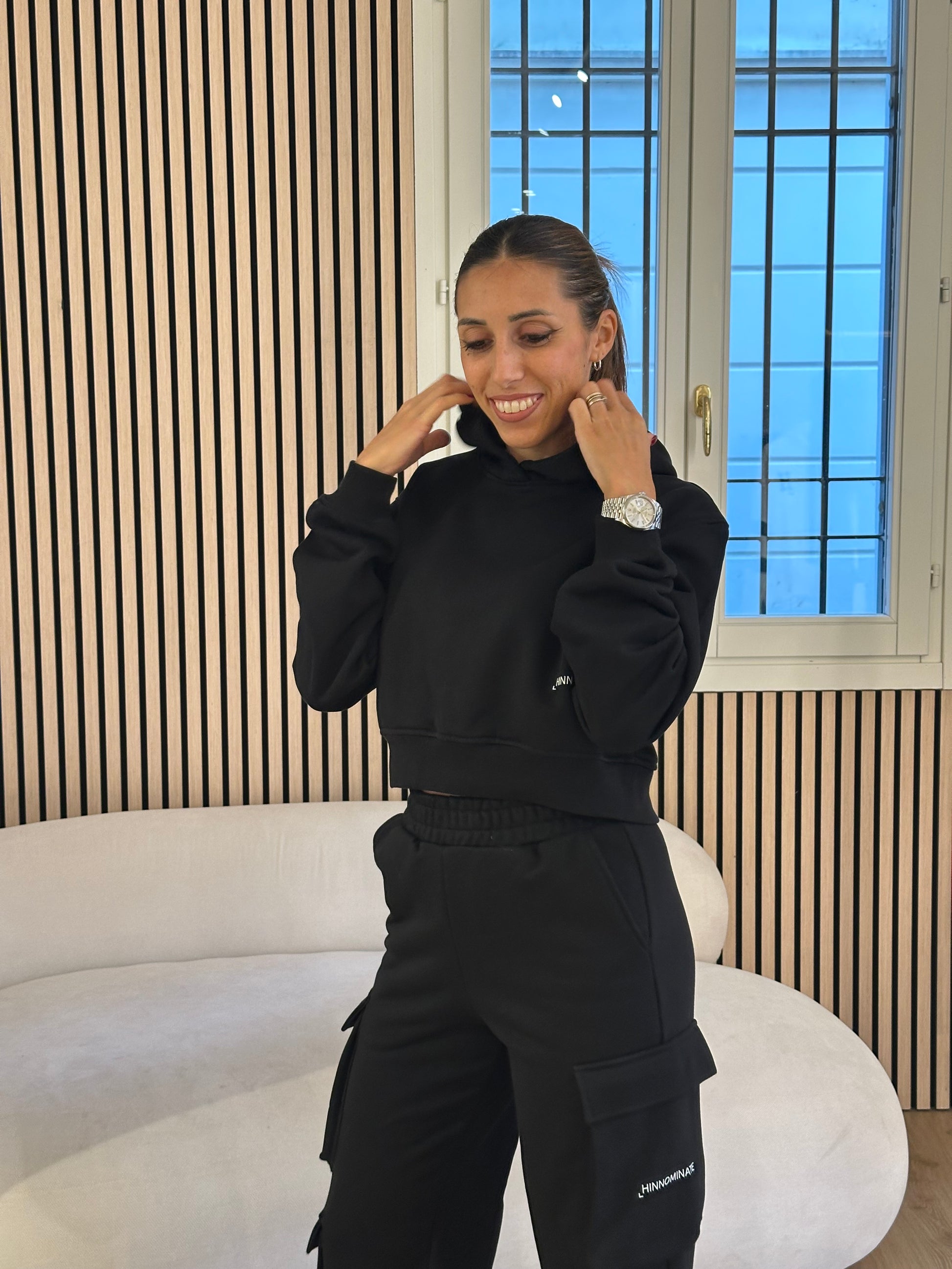 Questa felpa corta con cappuccio offre uno stile essenziale e versatile, perfetto per ogni occasione. Realizzata con materiali confortevoli, garantisce una vestibilità comoda e moderna. Ideale per chi cerca un capo pratico ma d'effetto, che unisce funzionalità e design minimalista.