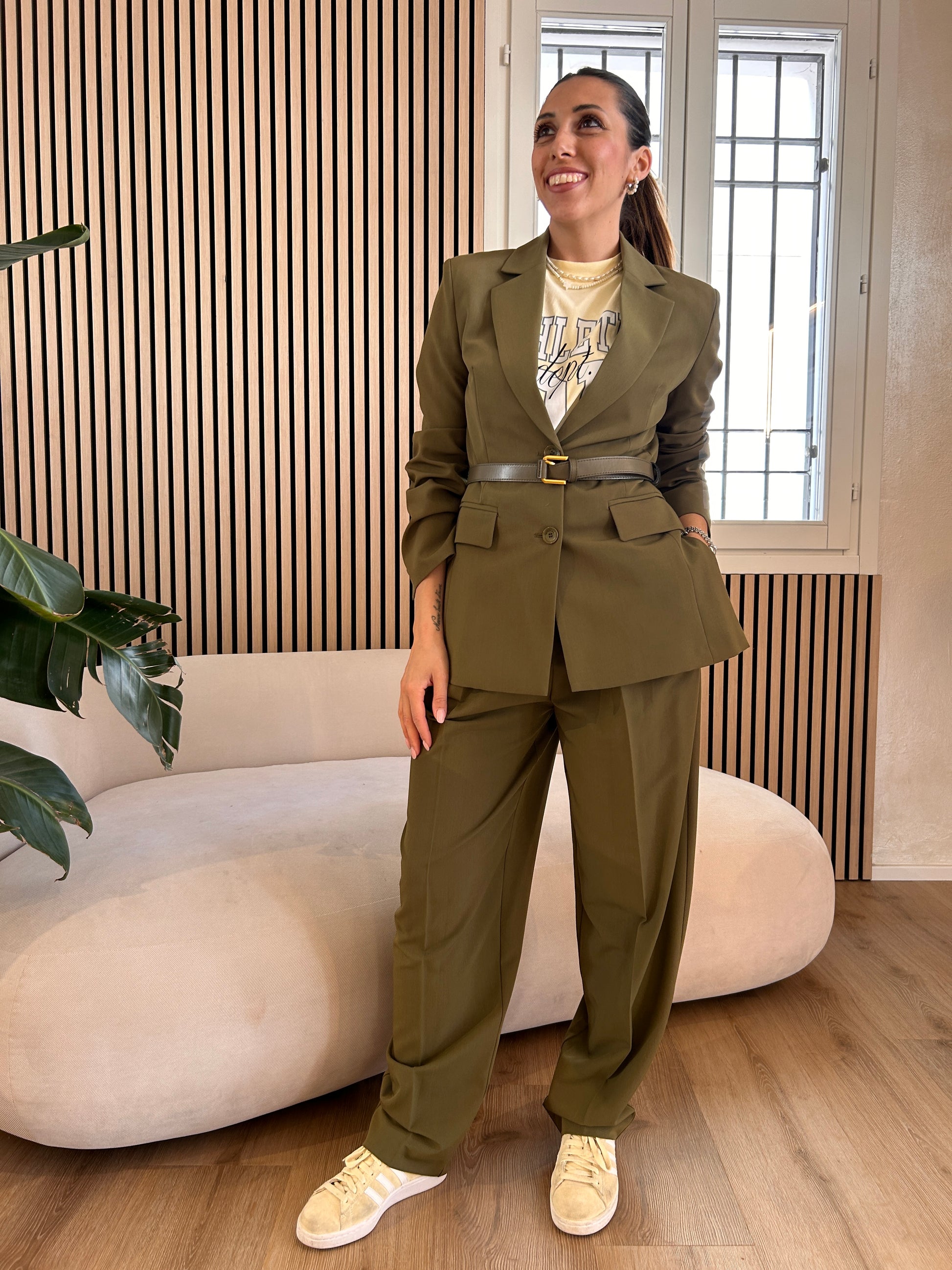 Giacca di Imperial color pistacchio con spalline imbottite , monopetto con cinturina compresa. Da abbinare , volendo al suo pantalone.