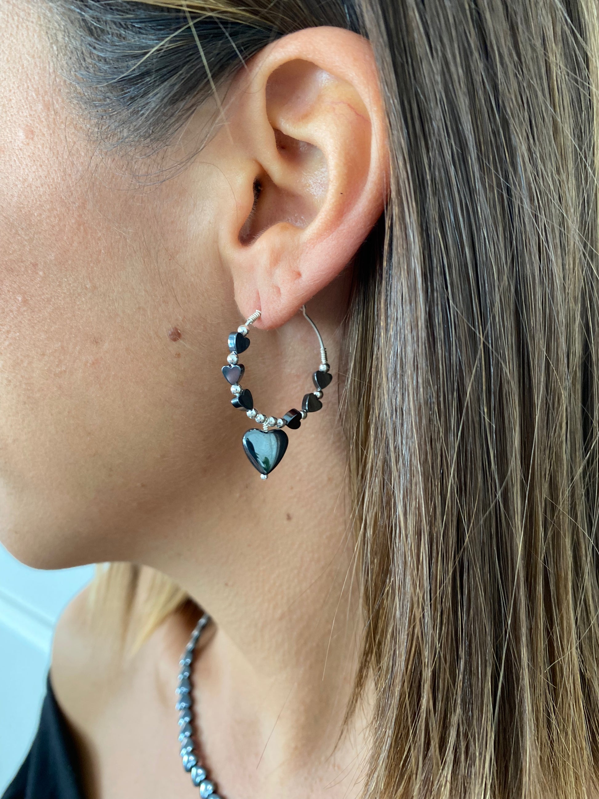 La collezione prende ispirazione dall'ematite: un cristallo con proprietà energetiche che aiutano la concentrazione e il benessere. La lucentezza metallica è data dalla presenza di ferro al suo interno ed è una caratteristica che valorizza il design di questi gioielli artigianali con base placcata in argento.