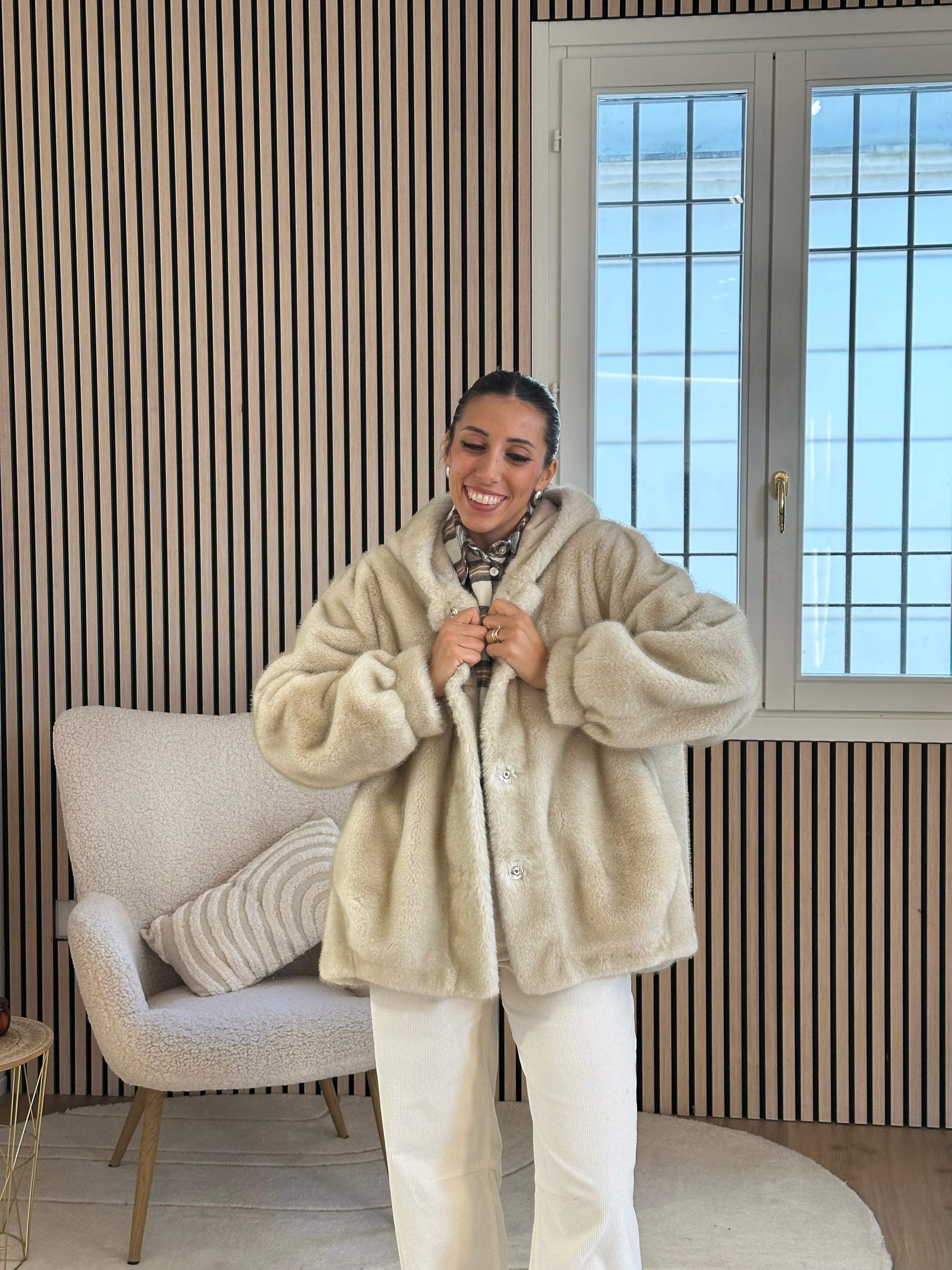 Pelliccia bomber beige