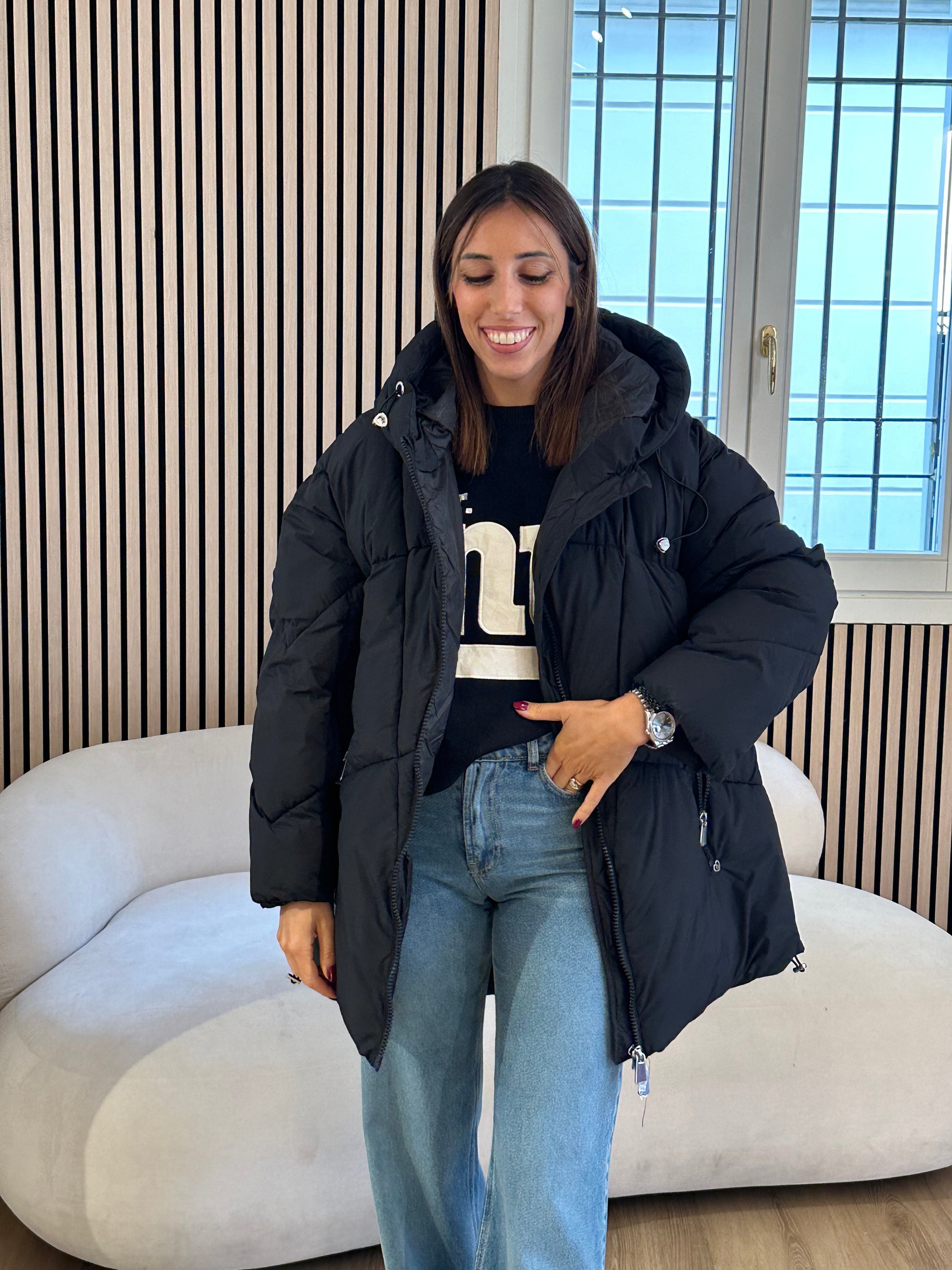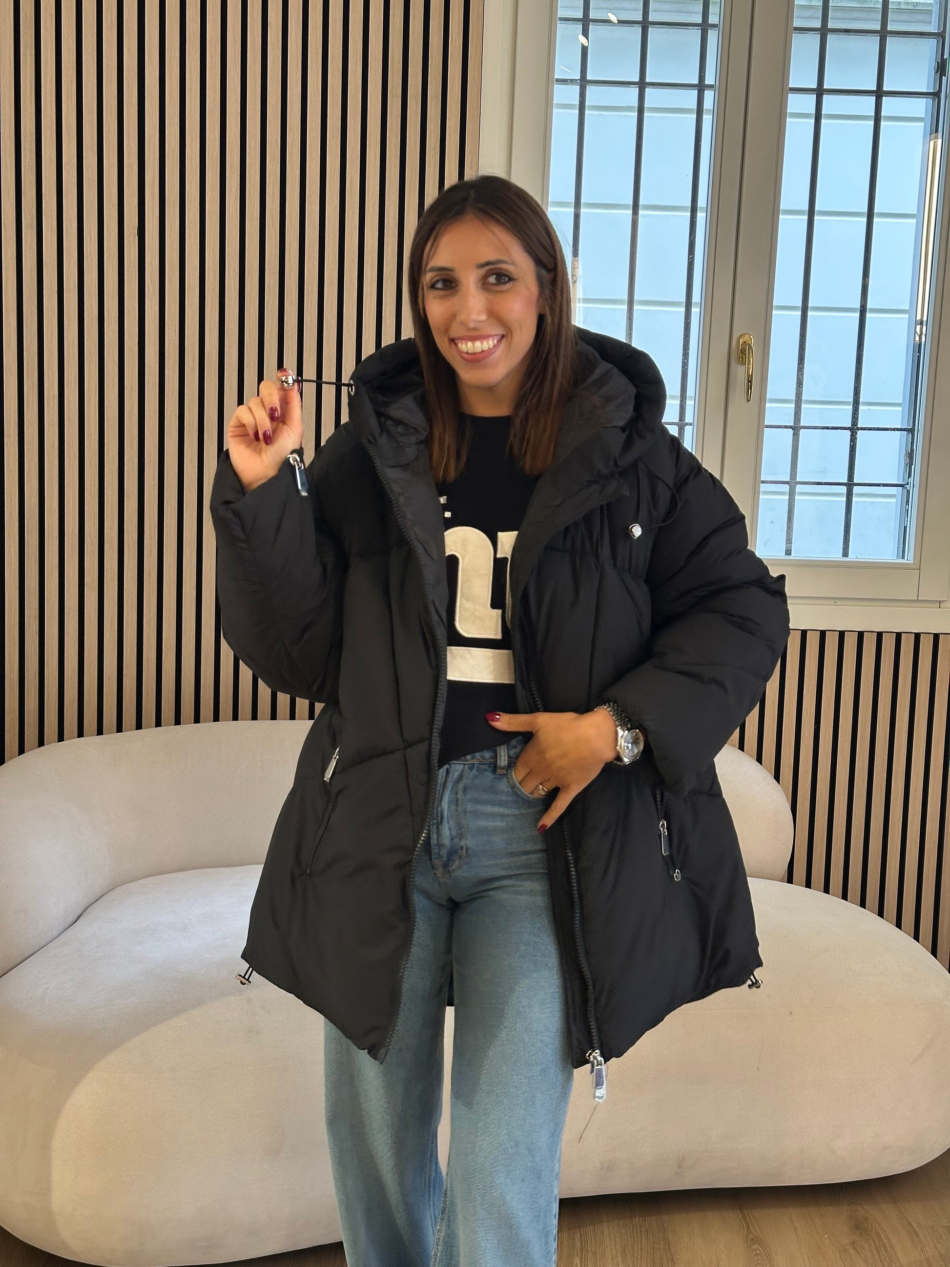 Il piumino lungo nero è la soluzione ideale per affrontare il freddo con stile e praticità. Realizzato con materiali di qualità, offre calore e comfort senza rinunciare all'eleganza. La cerniera sulle maniche aggiunge versatilità, permettendo di regolare la ventilazione o di trasformare il capo in base alle esigenze della giornata.