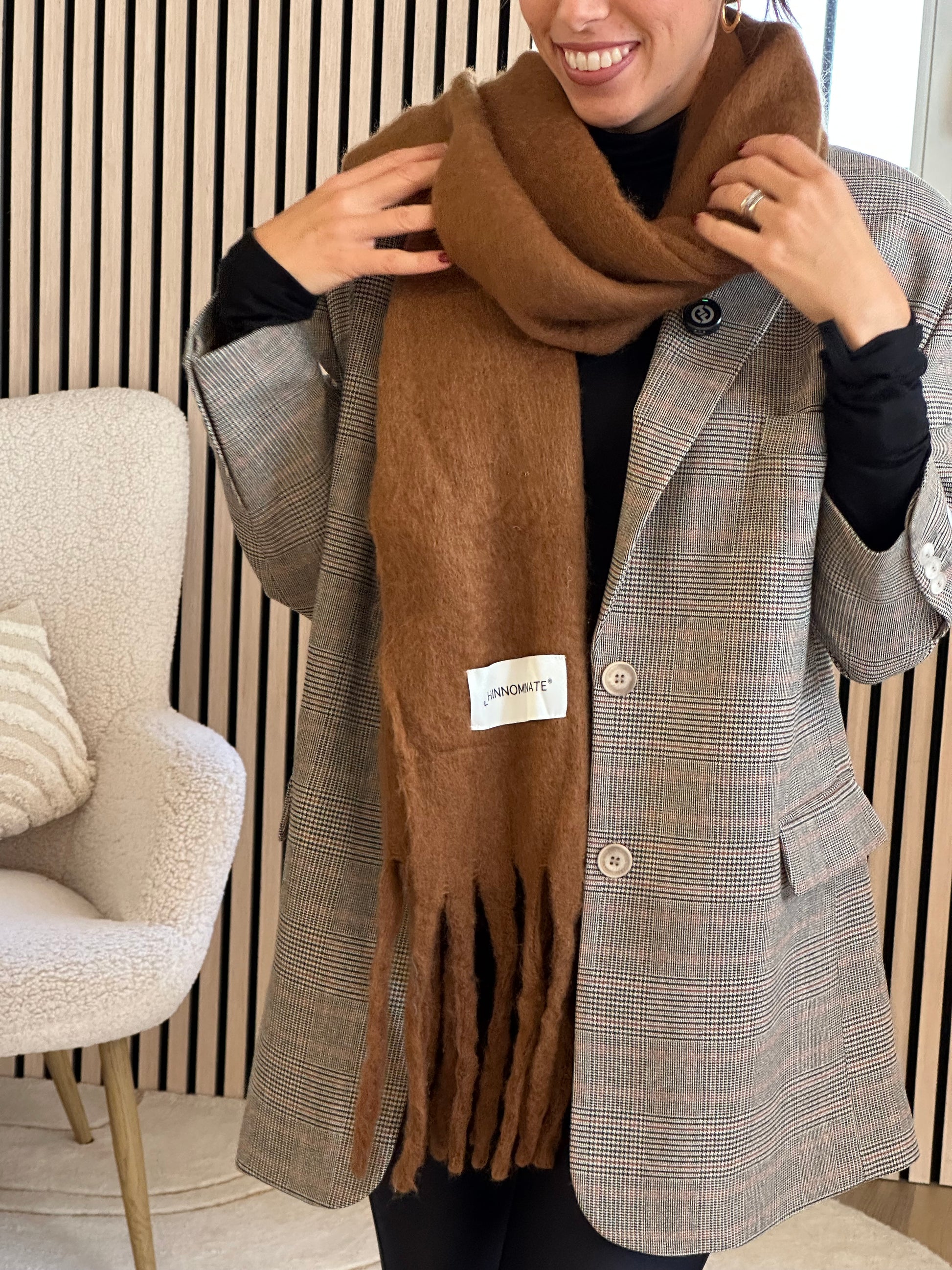 Avvolgiti nel comfort e nello stile con questa sciarpa in maglia, arricchita da eleganti frange che le donano un tocco di carattere e movimento. Perfetta per aggiungere calore senza rinunciare a un look raffinato, è l’accessorio ideale per affrontare con gusto le giornate più fresche.